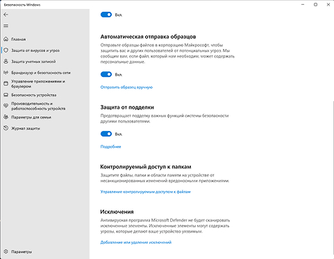 Параметры защиты от вирусов и угроз →